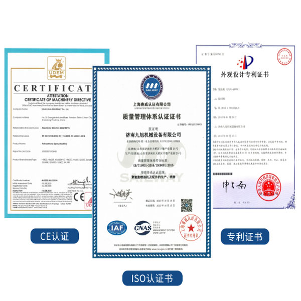 山東九旭機(jī)械科技有限公司歷經(jīng)十幾年的發(fā)展,已成長為聚氨酯設(shè)備行業(yè)頗具實(shí)力的設(shè)備制造業(yè)之一。企業(yè)主要產(chǎn)品:聚氨酯高壓噴涂機(jī)、聚氨酯發(fā)泡機(jī)、聚氨酯噴涂機(jī)、聚脲設(shè)備、聚氨酯發(fā)泡設(shè)備、聚氨酯發(fā)泡機(jī)等關(guān)于設(shè)備配件(聚氨酯高壓噴槍、槍嘴、加熱管道、料塊、摩擦副、增壓泵、混合式、提料泵等)也是堅(jiān)持最好的質(zhì)量服務(wù)用戶,并承接:外墻保溫、冷庫保溫發(fā)泡等工程。山東九旭機(jī)械科技有限公司已通過ISO9001:2015質(zhì)量管理體系認(rèn)證和國家高新技術(shù)企業(yè)認(rèn)證,目前山東九旭機(jī)械設(shè)備已領(lǐng)跑中國聚氨酯設(shè)備行業(yè),成為廣大客戶之首選。